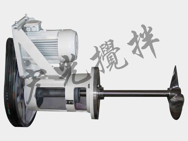 驅(qū)動(dòng)裝置采用普通電機(jī)或防爆電機(jī)直接通過皮帶輪驅(qū)動(dòng)裝置與攪拌軸聯(lián)接。攪拌軸由雙向推力軸承和水潤滑滑動(dòng)軸承支承,具有足夠的強(qiáng)度和剛度,并具有好的穩(wěn)定性。